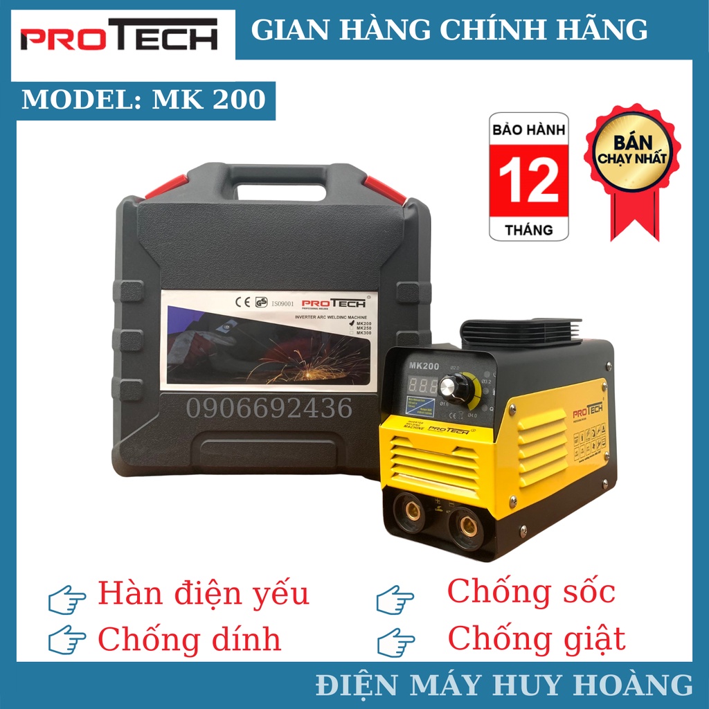 Nhà cửa & Đời sống > Dụng cụ & Thiết bị tiện ích > Dụng cụ > Dụng cụ hàn điện || Máy hàn que Proteck MK200, máy hàn điện yếu, chống dính chống giậtCòn hàng