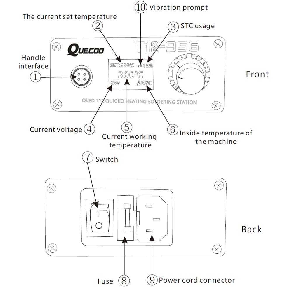 Máy hàn Quecoo T12-956 là loại máy hàn công suất 108-120W✓ Hỗ trợ nguồn AC 220V hoặc nguồn DC 24V-4A