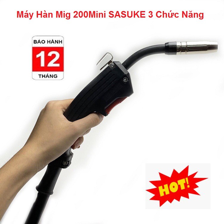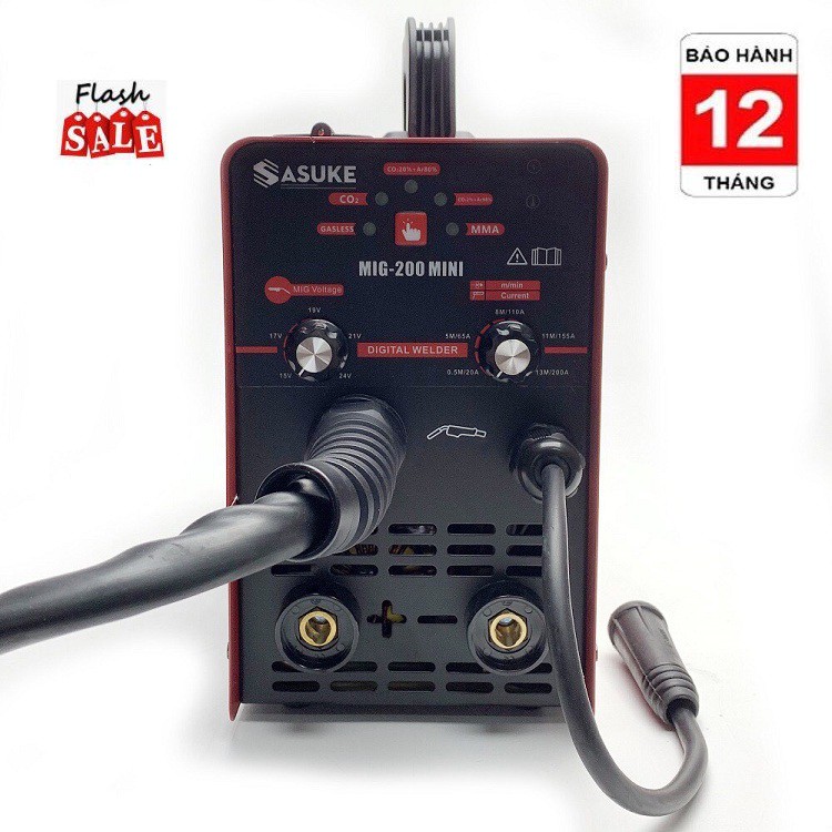 - Máy hàn Mig không dùng khí SASUKE 200 mini 3 chức năng với dòng hàn 200A giúp dễ mồi hồ quang điện, hồ quang cháy êm, mối hàn được bóng đẹp, ngấu.