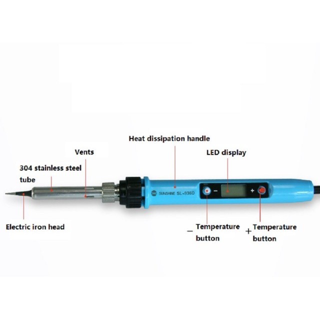 Máy Hàn SL-936DTay hàn siêu phẩm SL-936D có LCD hiển thị, nhiệt độ ổn định, là loại máy hàn chỉnh nhiệt độ được sử dụng nhiều với ae dân điện tử phục vụ công việc sữa chữa cũng như nghiên cứu kỹ thuật.