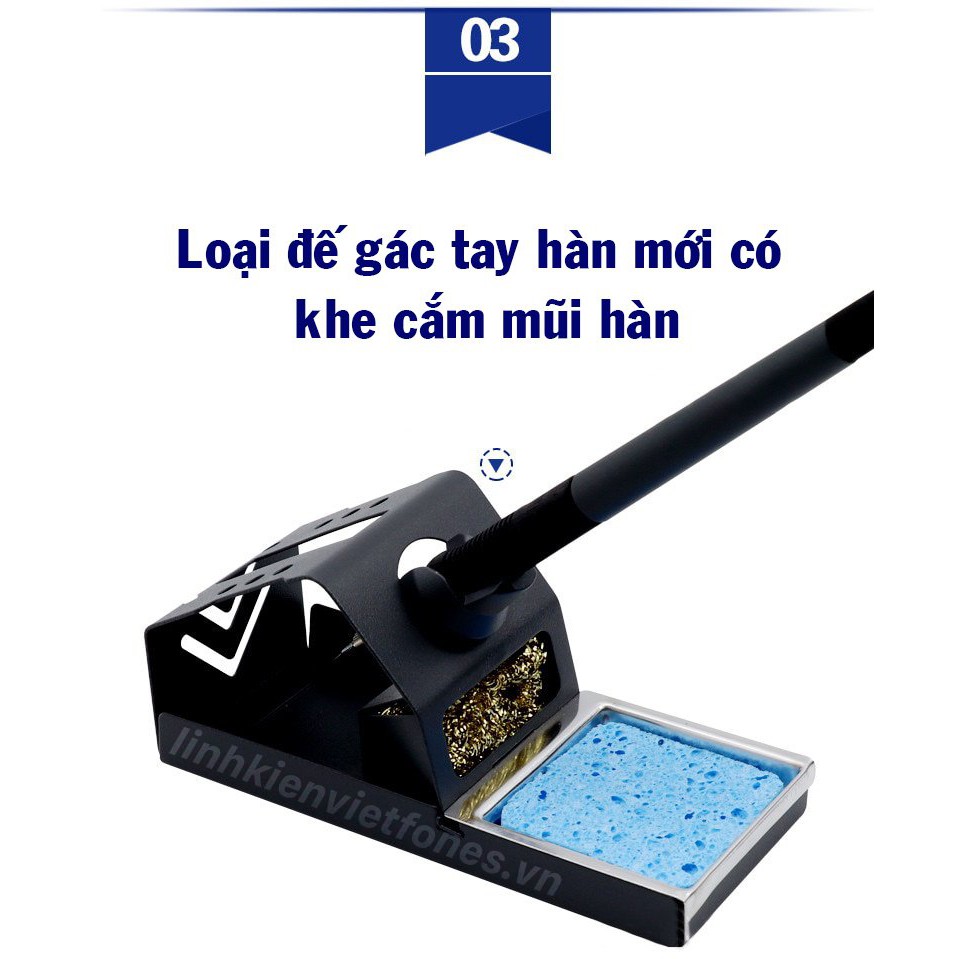 - 1 đế gác tay hàn : có khe cắm mũi hàn và khay đựng nhựa thông / chì