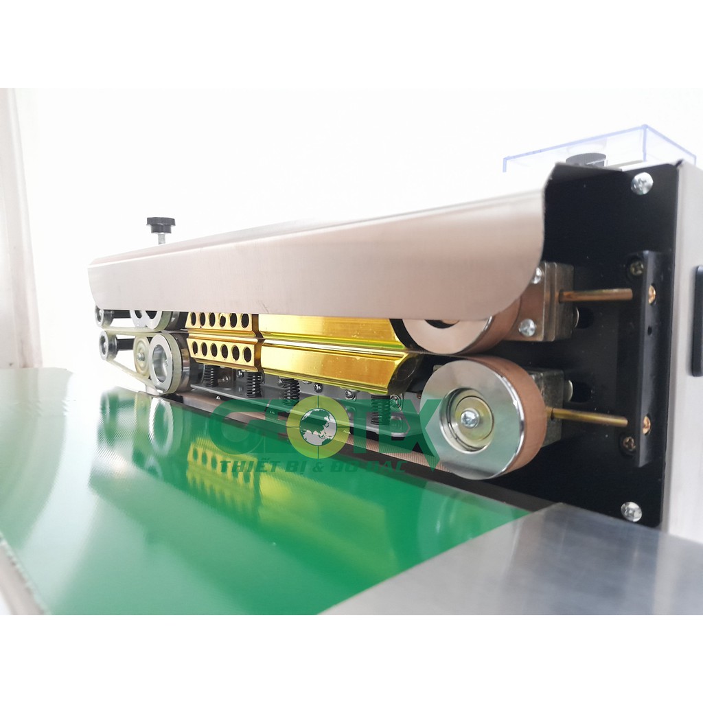 MÁY HÀN MIỆNG TÚI LIÊN TỤC FR-900Máy hàn túi FR-900 là dòng máy hàn miệng tui hiện đại, có công suất cao hơn các dòng máy hàn túi thông thường và thường được thiết kế dành cho các hộ kinh doanh có số lượng đóng gói mỗi ngày tương đối lớn. Máy có cấu trúc khung hoàn toàn bằng thép, rất cứng cáp và chắc chắn, máy có khả năng hàn mọi loại túi, bao gồm cả các loại túi phổ biến trên thị trường như túi nóng, túi lạnh, túi kraft, túi foil, túi nhôm