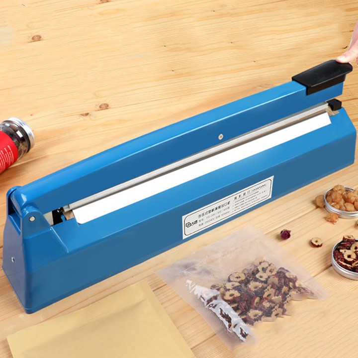 Máy hàn miệng túi dập tay giúp đóng gói sản phẩm an toàn và nhanh chóng, giúp bảo quản thực phẩm, đồ ăn bằng cách cho vào túi nylon và hàn kín miệng túi lại.