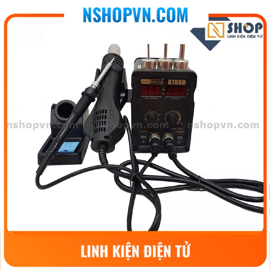 "🔴🔴 CHI TIẾT SẢN PHẨM✔️Máy hàn và khò điều chỉnh nhiệt độ 8786D được sử dụng sửa chữa các mạch điện tử, thay thế, hàn dán linh kiện một cách dễ dàng. Có led hiển thị nhiệt độ và núm xoay điều chỉnh nhiệt độ tiện lợi khi sử dụng. Mạch bao gồm máy chỉnh nhiệt độ, khò, mỏ hàn, đế gác mỏ hàn, bọt biển, đầu gắn khò và một số phụ kiện đi kèm.