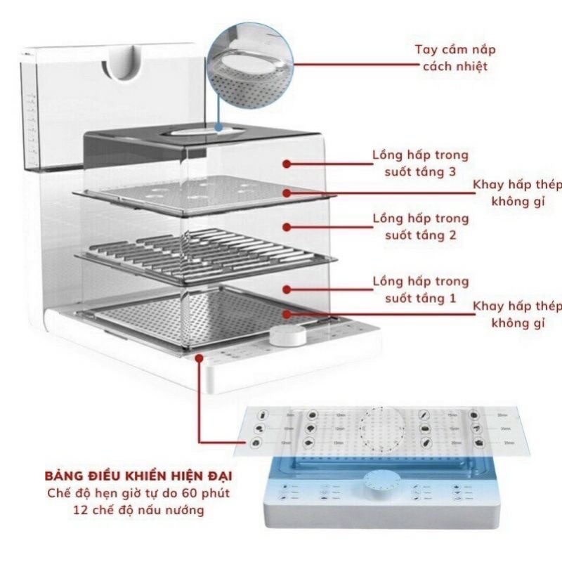 Giới thiệu Máy Hấp Điện Đa Năng, Nồi Hấp 3 Tầng YUNIKLY 1500W 10.8L Hấp Tất Cả Các Loại Thức Ăn Nhanh Chóng Bảo Hành 6 Tháng