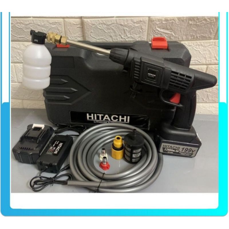 Nhà cửa & Đời sống > Dụng cụ & Thiết bị tiện ích > Dụng cụ > Máy rửa áp lực nước || Máy HITACHI 199V xịt rửa xe máy ô tô cầm tay PIN SẠC CỰC MẠNH áp lực cao bọt tuyết dùng gia đìnhCòn hàng