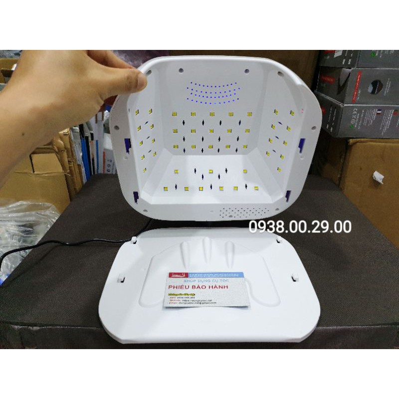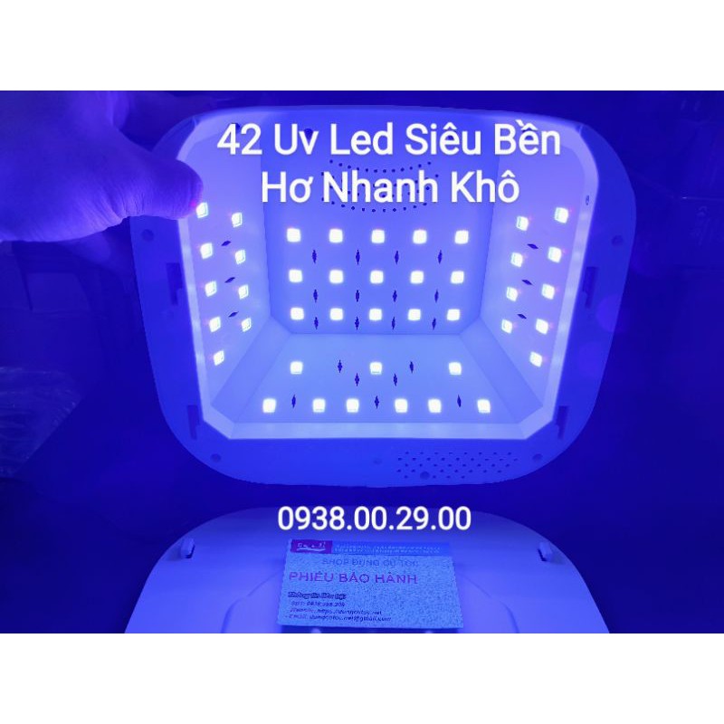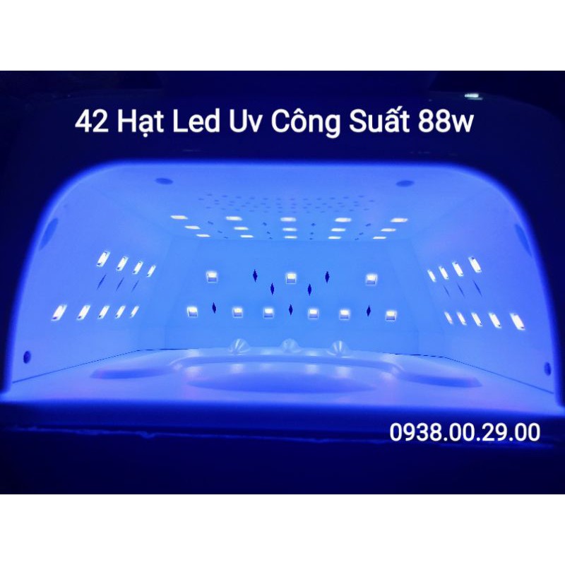- Máy thiết kế hiện đại bao gồm 42 hạt Led Uv to siêu bền với tổng công suất lên đến 88w nên thời gian hơ gel nhanh và hiệu quả.