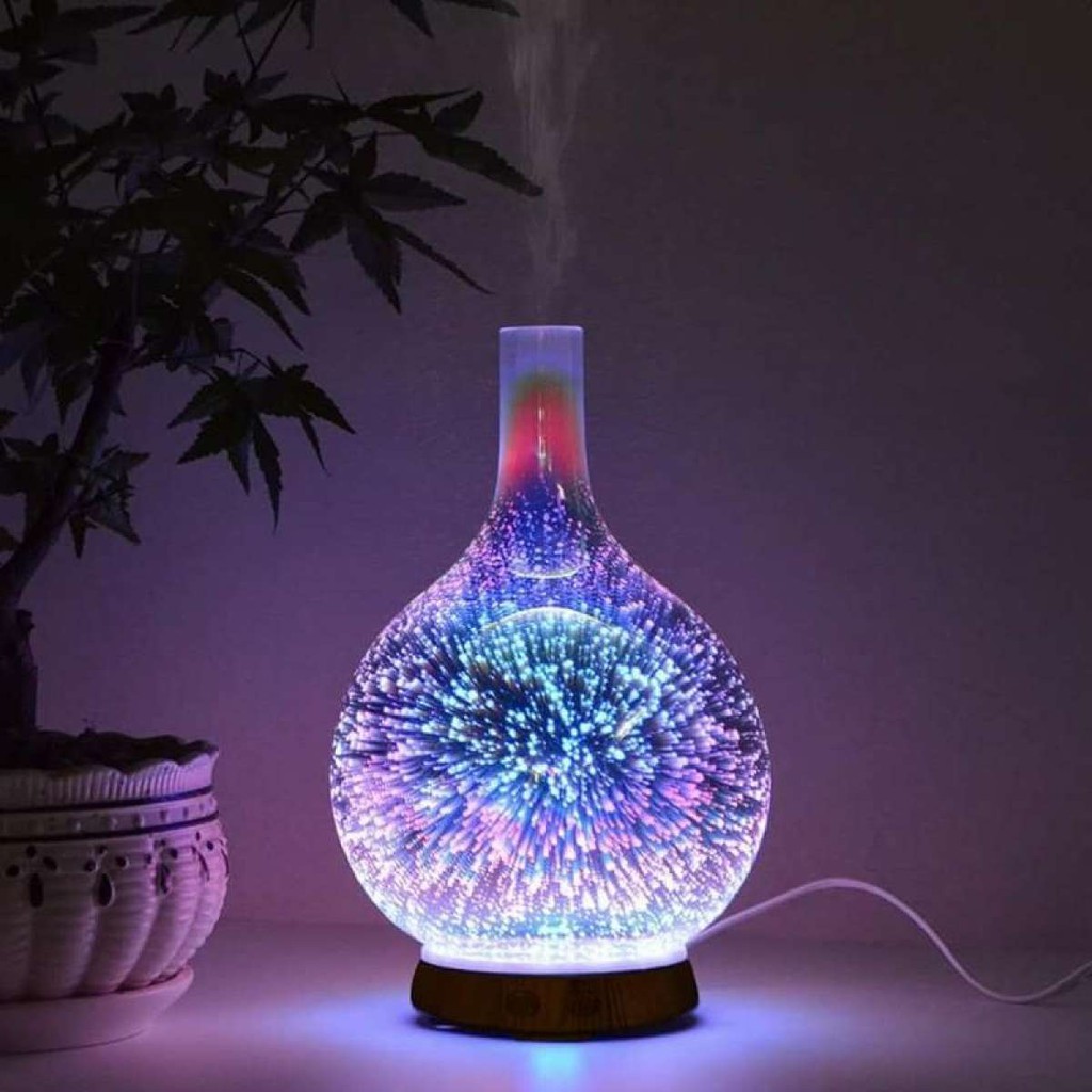 Máy Khuếch tán tinh dầu cao cấp 3D Lọ HoaCó 2 màu để lựa chọn: Hồng Đỏ Và hồng Xanh