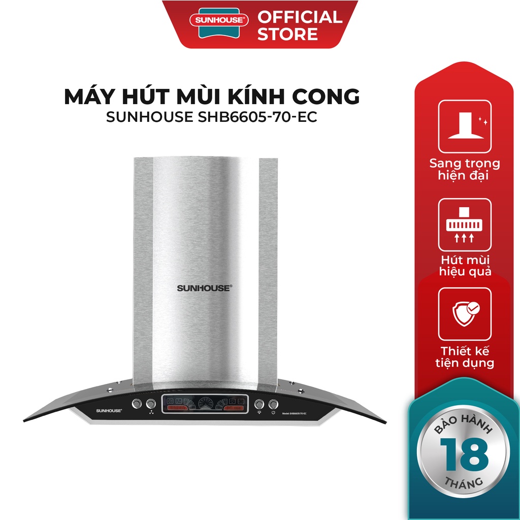 Thiết Bị Điện Gia Dụng > Đồ gia dụng nhà bếp > Máy hút khói || Máy hút mùi kính cong Sunhouse SHB6605-70-ECCòn hàng