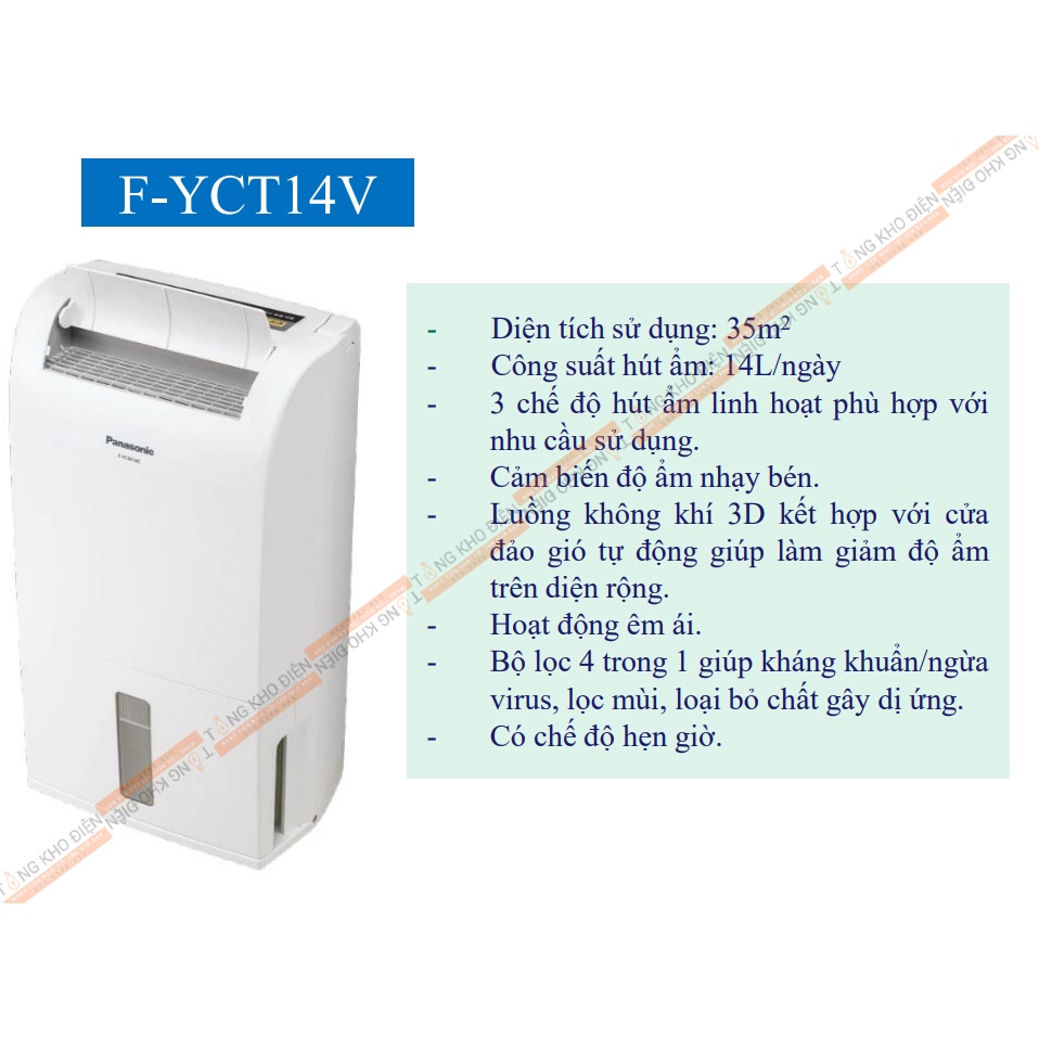 Thiết Bị Điện Gia Dụng > Thiết bị điện gia dụng nhỏ > Thiết bị xử lí không khí > Máy lọc không khí || [Mã ELHA22 giảm 5% đơn 300K] Máy hút ẩm, lọc không khí & diệt khuẩn Panasonic, Model F-YCT14V [CHÍNH HÃNG]Còn hàng