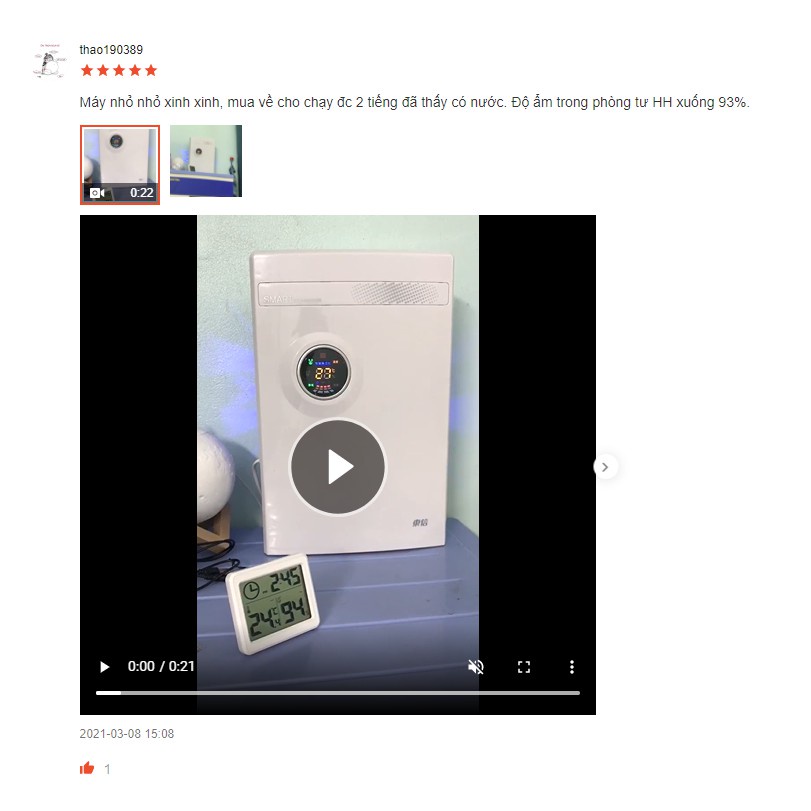 -Điện năng sử dụng: 220V làm giảm độ ẩm phòng; tránh các loại nấm mốc do hơi nước & không khí bẩn gây nên Tạo ra các ion lọc và làm sạch không khí; giúp cân bằng độ ẩm của phòng.