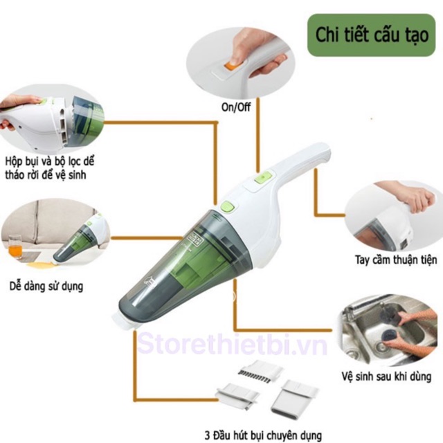 Hình dạng nhỏ gọn Tiết kiệm không gian. Khả năng hút các khu vực khó tiếp cận.