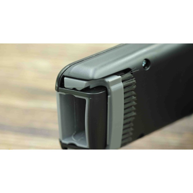 - Bên cạnh đó, máy còn đi kèm đầu chổi khi hút, có thể đánh bật lên những vết bẩn bám cứng đầu lên đến 50%. Máy hút bụi dùng pin Black Decker PV1820BK-B1 khi sạc có thể dựng thẳng đứng trên sàn (có chân đế), trông thật sang trọng và hiện đại, cũng với cách đó mà máy sẽ hạn chế được sự tiếp diện giữa máy và bề mặt sàn, bảo vệ vỏ máy, tránh xây xước một cách hoàn hảo nhất.