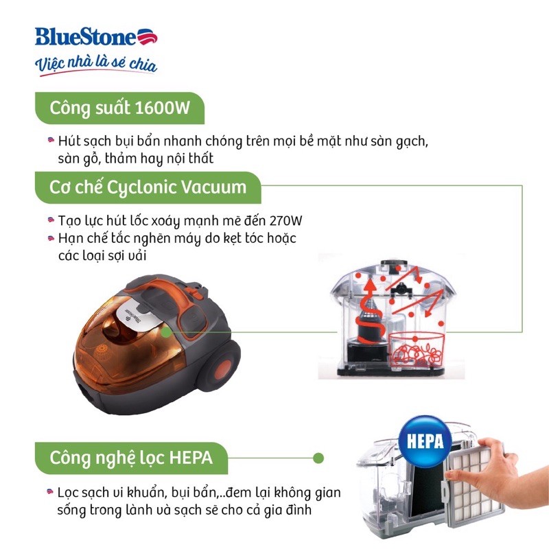 Thiết Bị Điện Gia Dụng > Thiết bị điện gia dụng nhỏ > Máy hút bụi & Thiết bị làm sạch sàn || Máy Hút Bụi BlueStone VCB-8037 - Hàng chính hãng - Bảo hành 24 thángCòn hàng