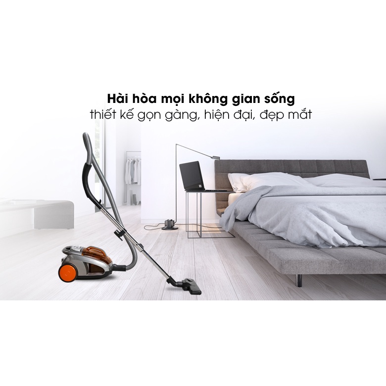 Dây điện dài 5m, bánh xe linh hoạt giúp người dùng dễ dàng di chuyển máy hút bụi tới mọi vị trí cần làm sạch trong ngôi nhà
