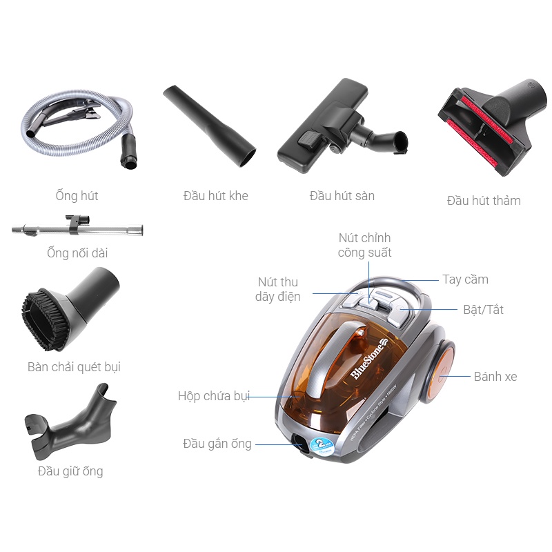 Giới thiệu [Mã ELHAMS5 giảm 6% đơn 300K] Máy hút bụi Bluestone VCB-8067 1800W - Bảo hành chính hãng 2 năm