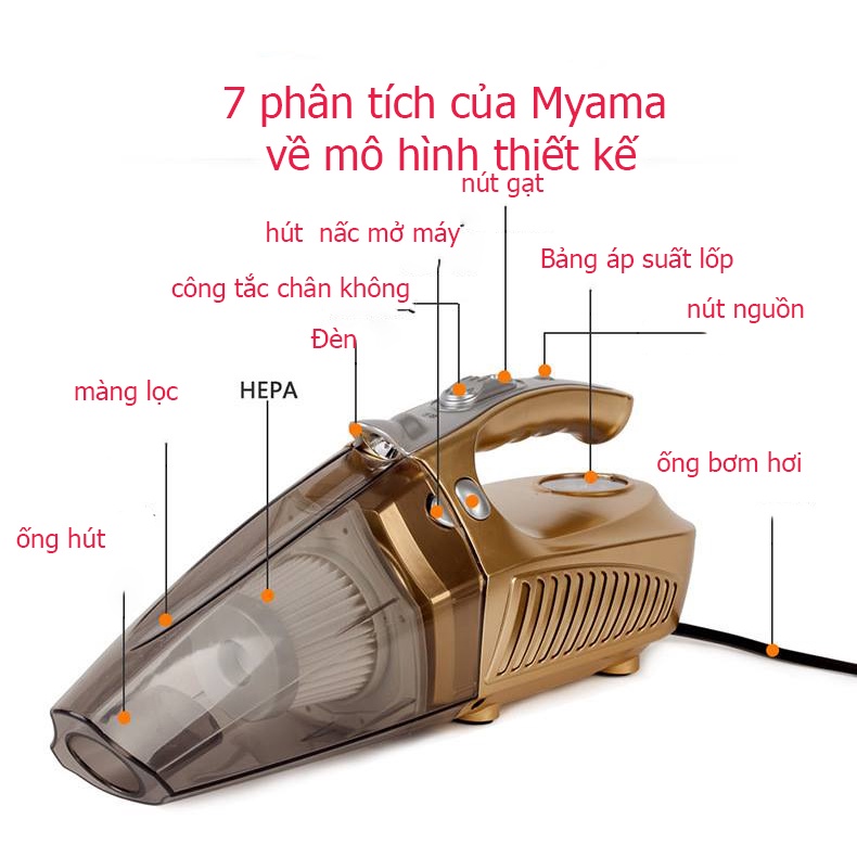 Máy hút bụi bơm lốp ô tô 4in1 - bản tiếng anh Máy Hút Bụi Ô Tô Công Xuất 120W Mini