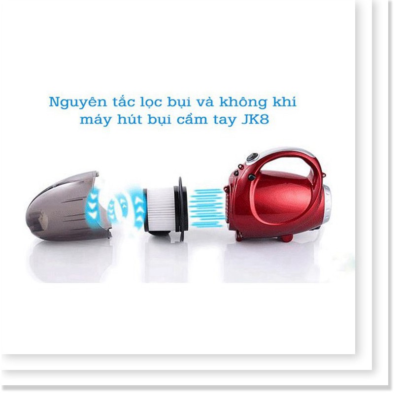 - Máy hút bụi Vacuum Cleaner JK-8 thiết kế ấn tượng với kích thước và trọng lượng gọn nhẹ. Nhưng không vì thế mà máy kém hiệu quả.