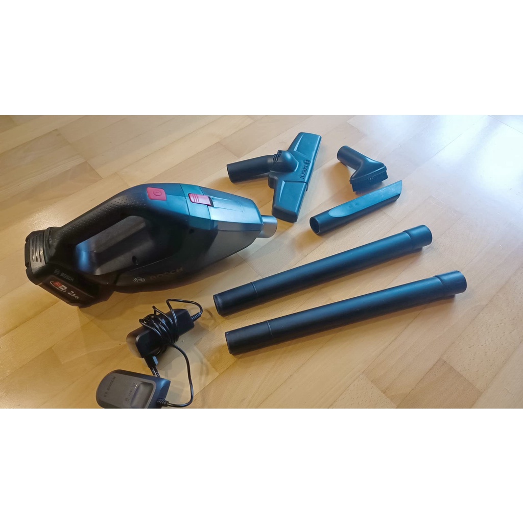 - Máy hút bụi không dây Bosch sử dụng pin 18V mạnh mẽ cho lực hút cao với ống nối dài tiện dụng giúp hút bụi sàn, làm sạch bề mặt ghế sofa, rèm cửa và hút bụi bẩn ở mọi ngóc ngách một cách dễ dàng và nhanh nhất.