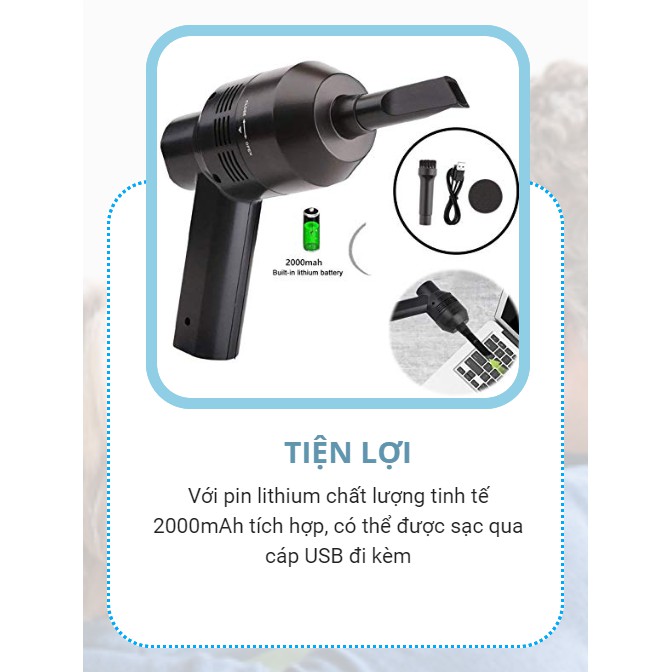 Máy hút bụi cầm tay có cổng sạc USB 2000mAh - Home and Garden