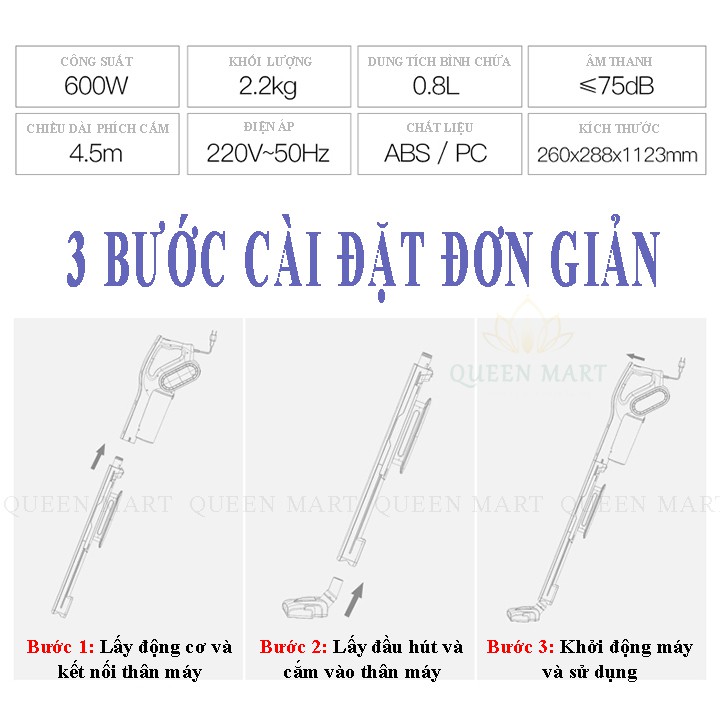 [KÈM 3 ĐẦU HÚT] Máy hút bụi cầm tay Deerma - Máy hút bụi gia đình, Công nghệ lốc xoáy, Thiết kế tay cầm 2in1 – Q001Dọn dẹp nhà cửa là công việc diễn ra thường xuyên và đều đặn của mỗi gia đình với mong muốn đón nhận luồng sinh khí tươi mới như những ngày xuân về. Thế nhưng, công việc này lại thường đem đến sự mệt mỏi cho các thành viên trong gia đình. Chính vì thế, bạn đừng bỏ qua những gợi ý sau đây của QUEEN MART để sắm những chiếc máy hút bụi gia đình tiện lợi, giúp bạn dọn dẹp nhà cửa đón Tết nhanh chóng, tiết kiệm hiệu quả công sức và thời gian nhé!
