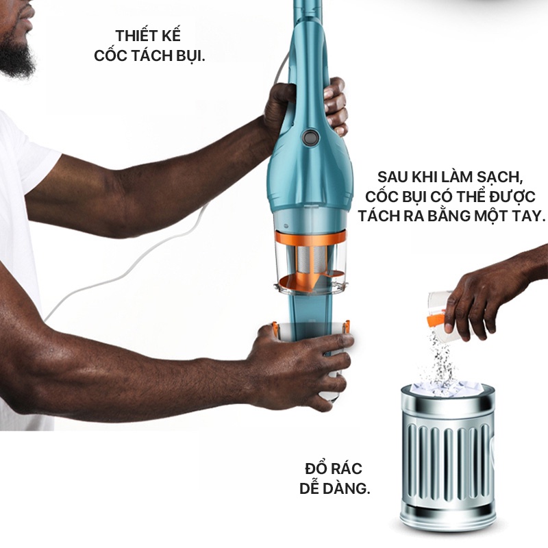 Ngoài ra, sản phẩm được trang bị cán và tay cầm được thiết kế 2 trong 1 có thể tháo rời và nhiều đầu hút khác nhau, rất thuận tiện cho bạn khi sử dụng