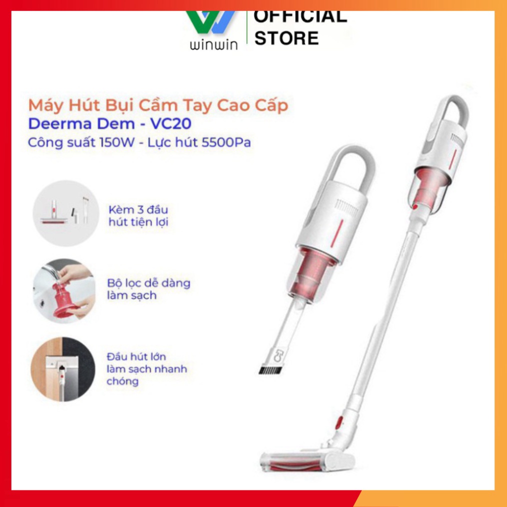 Thiết Bị Điện Gia Dụng > Thiết bị điện gia dụng nhỏ > Máy hút bụi & Thiết bị làm sạch sàn || Máy Hút Bụi Cầm Tay DEERMA VC20 Plus Bản Quốc Tế, Công suất 150W, Pin 2200mAh, 3 Đầu Độ Hút_VimartCòn hàng