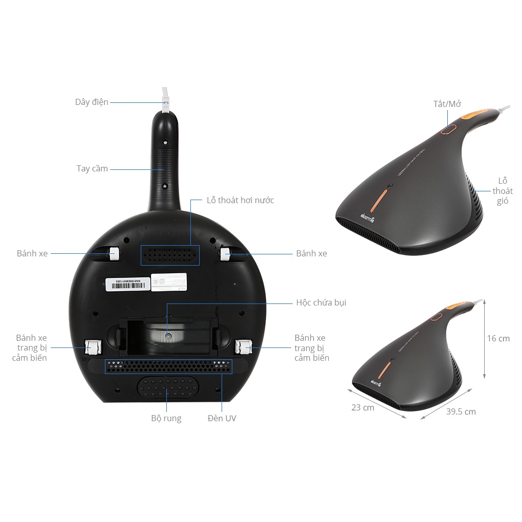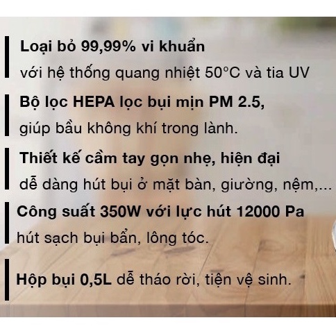 - Loại máy: Máy hút bụi cầm tay đệm giường diệt khuẩn
