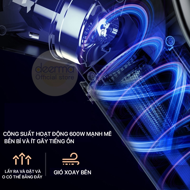 - Máy hút bụi đa năng DEERMA ứng dụng công nghệ lốc xoáy - Pro Cyclone, Rocket Vacuum tăng hiệu quả hút bụi và tiết kiệm điện năng hiệu quả. Công suất hoạt động 600W mạnh mẽ, bền bỉ và ít gây tiếng ồn trong quá trình sử dụng. Kết hợp bộ lọc không khí đạt tiêu chuẩn Hepa không những làm sạch không gian mà còn mang lại bầu không khí trong lành, kể cả những hạt bụi li ti trong không khí