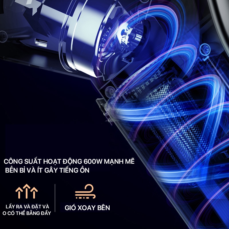 - Máy hút bụi đa năng DEERMA ứng dụng công nghệ lốc xoáy - Pro Cyclone, Rocket Vacuum tăng hiệu quả hút bụi và tiết kiệm điện năng hiệu quả. Công suất hoạt động 600W mạnh mẽ, bền bỉ và ít gây tiếng ồn trong quá trình sử dụng. Kết hợp bộ lọc không khí đạt tiêu chuẩn Hepa không những làm sạch không gian mà còn mang lại bầu không khí trong lành, kể cả những hạt bụi li ti trong không khí