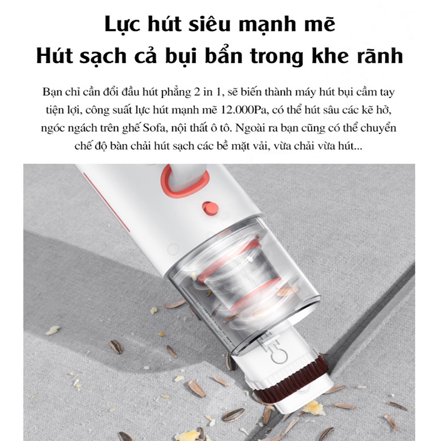 – Máy hút bụi cầm tay Xiaomi Deerma CM1300 có khả năng làm nóng nệm và độ rung nhất định 8000 lần/phút.