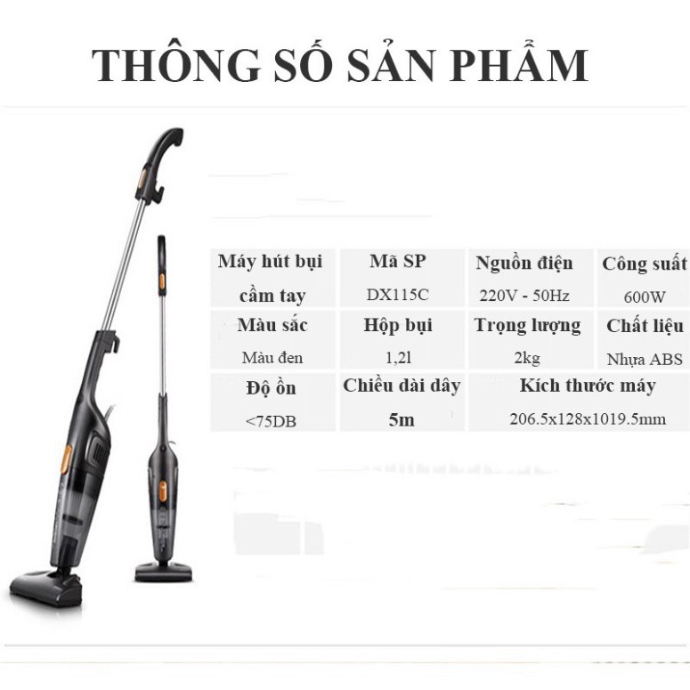 Máy hút bụi cầm tay gia đình Deerma DX115C máy hút bụi gia dụng 3in1 đa năng tiện dụng hút nệm, đệm, sàn siêu tốtThông số kĩ thuật- Nhãn hiệu: DEERMA 115C