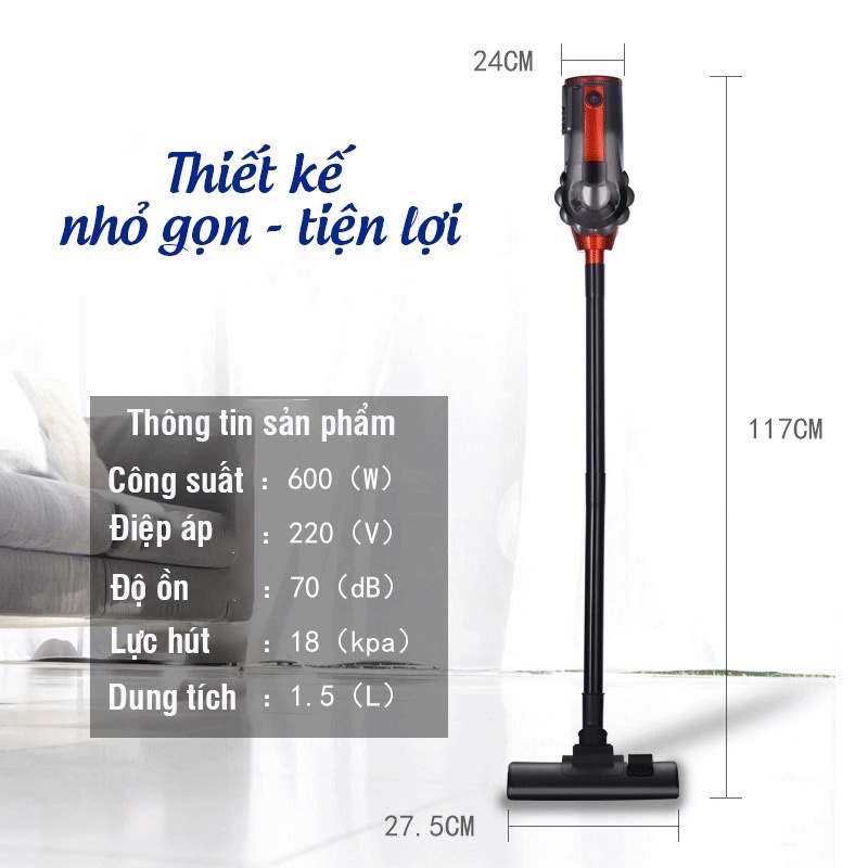 - Máy hút bụi công suất hút bụi mạnh mẽ, đi kèm với nhiều đầu hút để bạn lựa chọn phù hợp với bề mặt làm sạch.