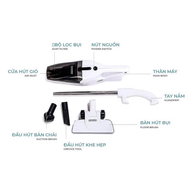 Giới thiệu [Mã ELHA03 giảm 5% đơn 300K] Máy hút bụi cầm tay Hanu HNV 600s - siêu tiện lau bậc thang và ngóc ngách