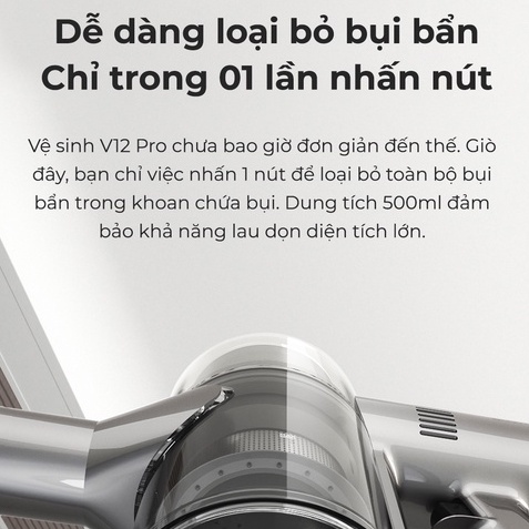 Dễ dàng làm sạch từ trên xuống dưới: Cực kỳ nhẹ và cân bằng tốt, Dreame V12 Pro giúp việc lau chùi những nơi khó tiếp cận trở nên dễ dàng một cách đáng kể. Xoay, nâng hoặc góc để làm sạch các khu vực khó tiếp cận và những nơi cao. Thanh sợi carbon siêu nhẹ rất lý tưởng để làm sạch không gian chật hẹp loại bỏ bụi bẩn mọi ngóc ngách