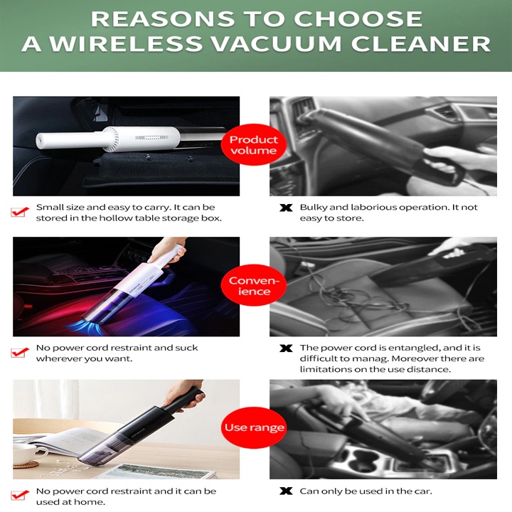 – Máy hút bụi ô tô cầm tay mini không dây có công suất tiêu thụ điện: 120W