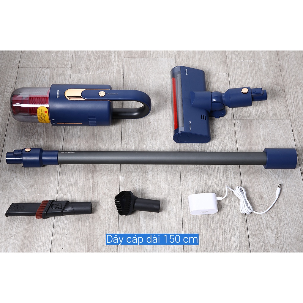 - Trang bị 3 loại đầu hút: đầu hút sàn, đầu hút khe, đầu hút bàn chải, đi kèm sản phẩm có ống nối dài giúp bạn có thể hút bụi ở mọi nơi: