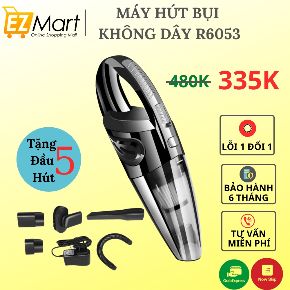 Máy hút bụi cầm tay không dây công suất lớn 120W, Máy hút nhỏ gọn tiện lợi, hút sạch mọi bụi bẩn Tặng 5 đầu hút