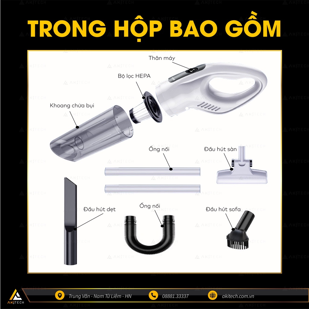Máy hút bụi cầm tay không dây AKI DUSTER mini hút bụi nhà cửa giường nệm xe hơi siêu nhẹ công suất 9000PA