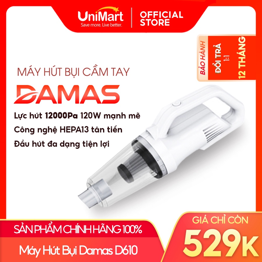 Thiết Bị Điện Gia Dụng > Thiết bị điện gia dụng nhỏ > Máy hút bụi & Thiết bị làm sạch sàn || Máy Hút Bụi Cầm Tay Không Dây Sử Dụng Pin Sạc Damas D610 - Hàng Chính Hãng - UniMart Official StoreCòn hàng