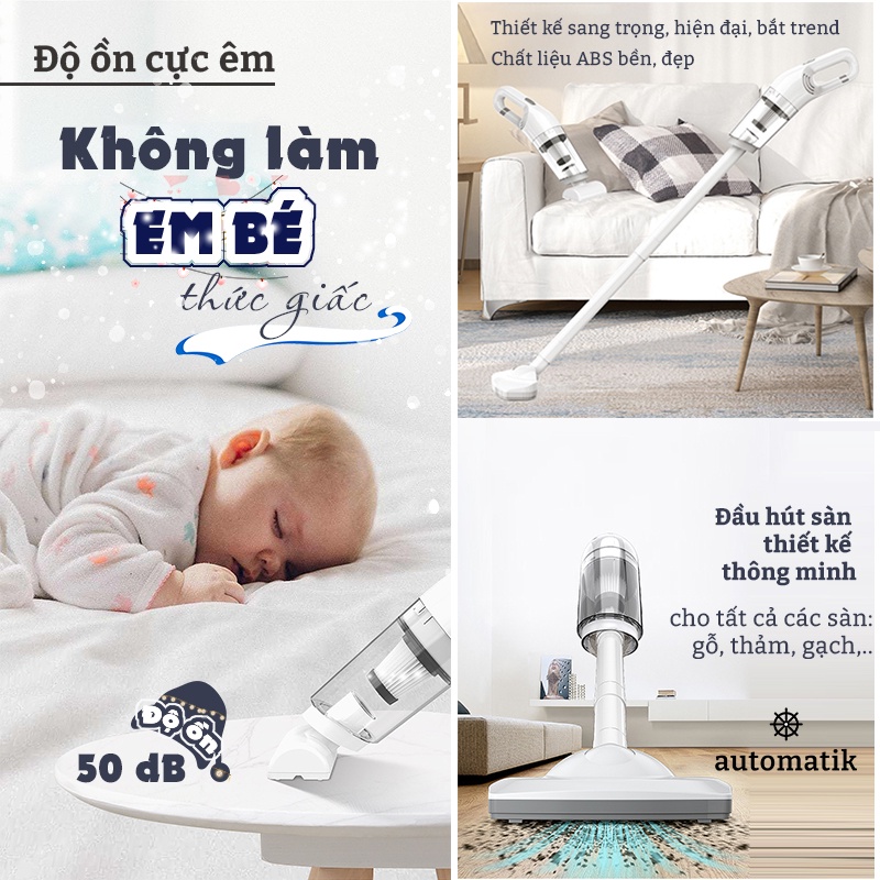 Thiết Bị Điện Gia Dụng > Thiết bị điện gia dụng nhỏ > Máy hút bụi & Thiết bị làm sạch sàn || Máy Hút Bụi Cầm Tay Không Dây, Oto Xe Hơi, Gia Đình, Bàn Phím, Sofa, Nhà Cửa M08 - AutomatikCòn hàng