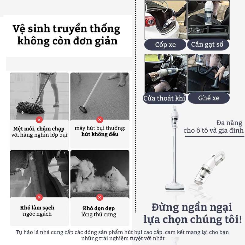 Máy hút bụi không dây thiết kế tinh tế hiện đại, chất liệu ABS bền bỉ, ĐA NĂNG cho ô tô và gia đình