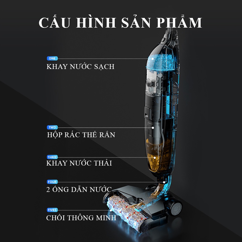 Thiết Bị Điện Gia Dụng > Thiết bị điện gia dụng nhỏ > Máy hút bụi & Thiết bị làm sạch sàn || Máy hút bụi cầm tay không dây phiên bản quốc tế hút và lau 2 in 1, hút khô lỏng, tự động giặt khăn công suất lớnCòn hàng