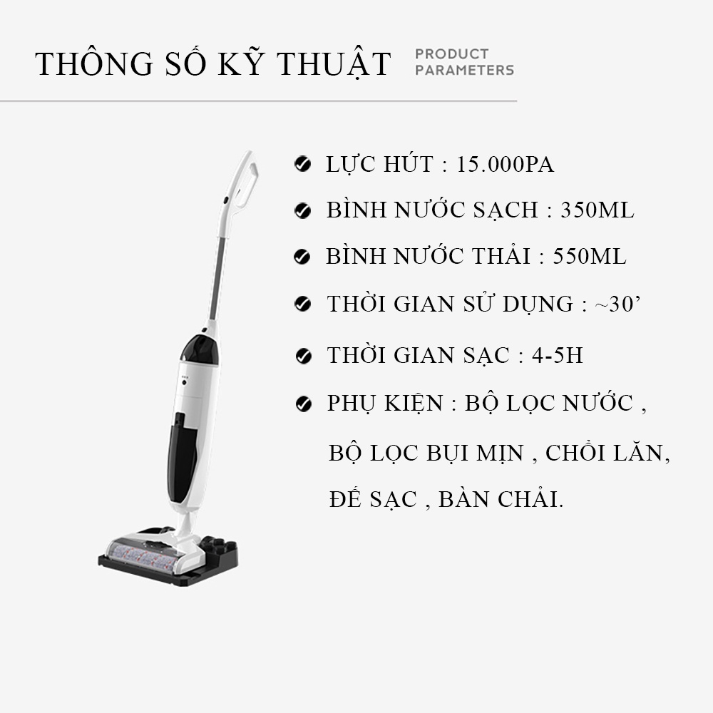 ĐẶC ĐIỂM NỔI BẬT:- Công suất lớn: trang bị động cơ 200W, lực hút 15.000Pa