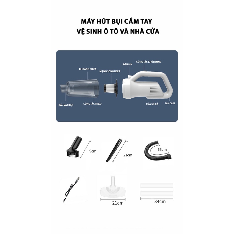 Thiết Bị Điện Gia Dụng > Thiết bị điện gia dụng nhỏ > Máy hút bụi & Thiết bị làm sạch sàn || Máy hút bụi cầm tay không dây 4 đầu hút + 2 ống nối - Lực hút cực mạnh 12000Pa - Thiết kế đèn Led cao cấpCòn hàng