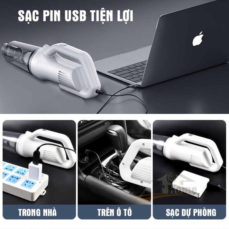 Máy Hút Bụi Cầm Tay Không Dây Đa Năng LT-106EG , Máy Hút Bụi Mini Sạc Chân Cắm USB Lực Hút 12000Pa - 120W
