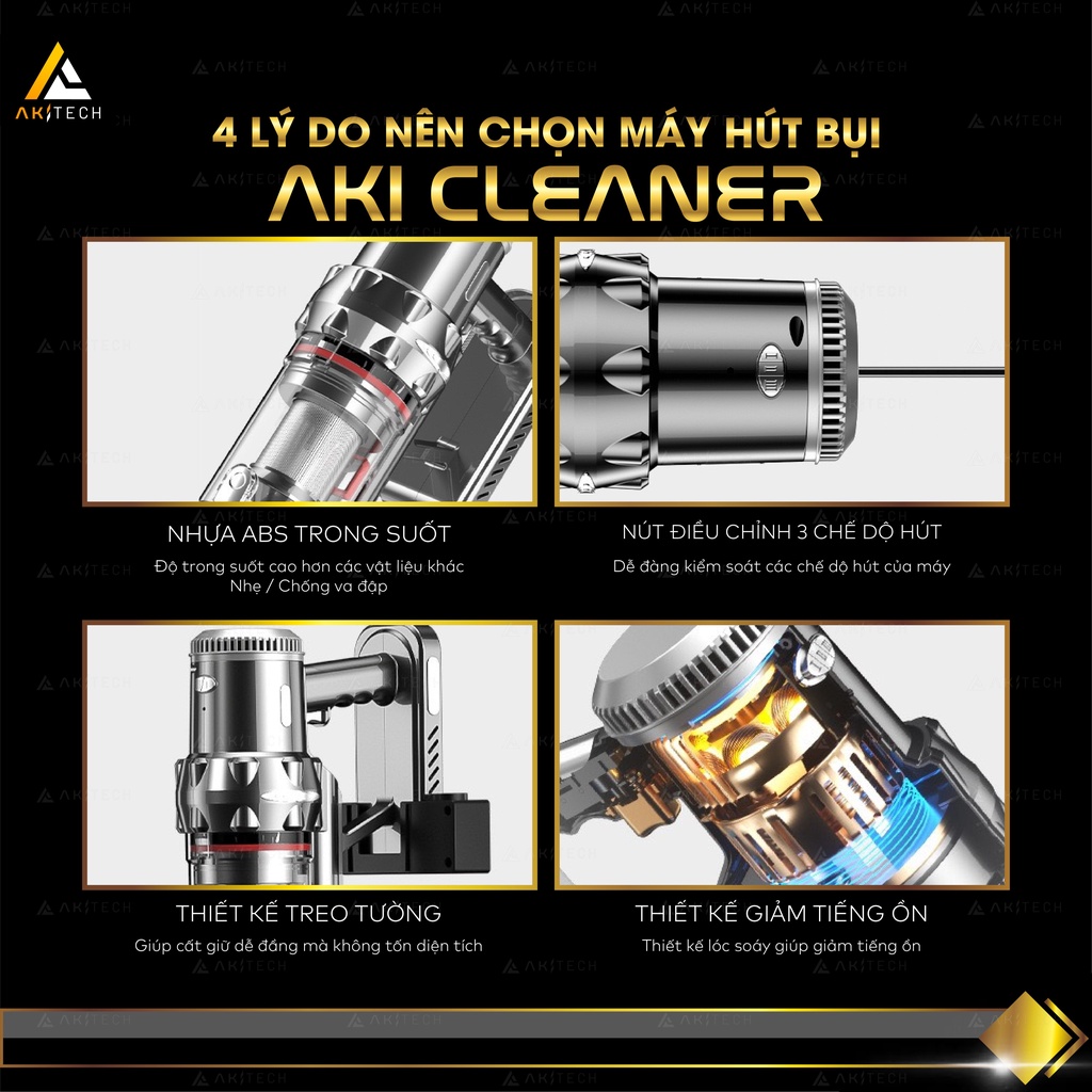 Giới thiệu Máy hút bụi cầm tay không dây AKI CLEANER hút giường đệm sofa, Robot hút bụi nhà cửa lực hút 12000Pa