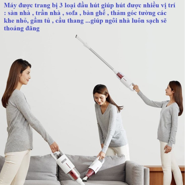 Nhà cửa bụi bặm không sạch sẽ luôn làm bạn rất khó chịu và lo lắng cho sức khỏe của các thành viên trong gia đình. Do bận rộn với công việc bạn lại không có thời gian để dọn dẹp thường xuyên nhưng giờ đây bạn sẽ không còn phải đâu đầu về nó nữa: Máy Hút Bụi Cầm Tay Không Dây Deerma VC20 một phiên bản máy hút bụi cao cấp mới của DEERMA với nhiều tính năng hiện đại, tiện lợi. Sản phẩm hứa hẹn sẽ tạo ra một ảnh hưởng lớn giúp thay đổi thói quen làm việc nhà của người dùng.Sản phẩm sở hữu thiết kế nhỏ gọn cùng ngăn chứa khoảng 800ml, rất phù hợp khi sử dụng để hút bụi trên bàn ăn, dùng vệ sinh ô tô, hút bụi trên ghế sofa, hút mảnh vụn thức ăn rơi vãi… Ngoài ra, nhờ thiết kế nhỏ gọn nên người dùng có thể mang theo sản phẩm để sử dụng khi đi du lịch, cắm trại hoặc đi công tácModel :VC20 Máy hút bụi và lau sàn