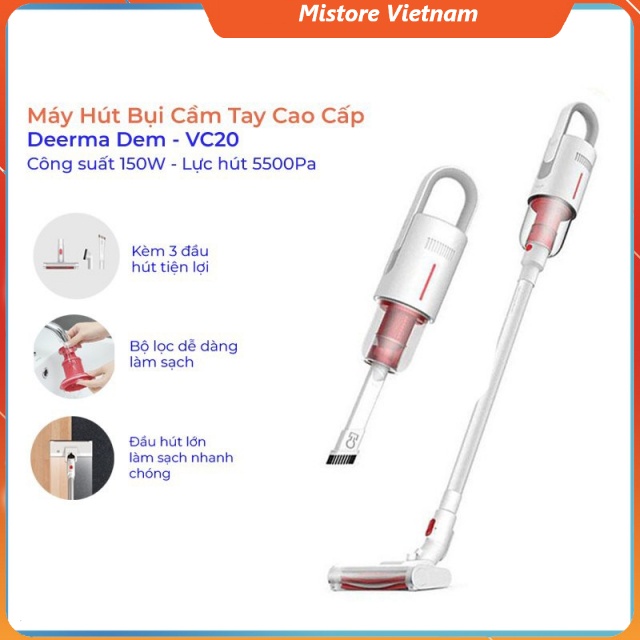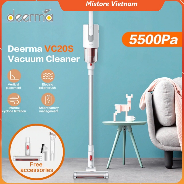 - Máy hút bụi Deerma DEM-VC20S được trang bị động cơ không chổi than cao cấp, với lực hút mạnh 3000 vòng/ phút cùng công suất 100W nhẹ nhàng xuyên qua khe hở để làm sạch 99% bụi bẩn mà không làm trầy xước thảm hay sàn nhà.