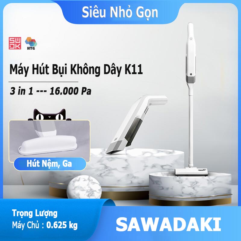 Thiết Bị Điện Gia Dụng > Thiết bị điện gia dụng nhỏ > Máy hút bụi & Thiết bị làm sạch sàn || Máy hút bụi không dây Sawadaki K11 [siêu gọn nhẹ], 3 in 1 dọn dẹp nhà cửa 1 tay, hút 2 cấp độ lên đến 16000 PaCòn hàng
